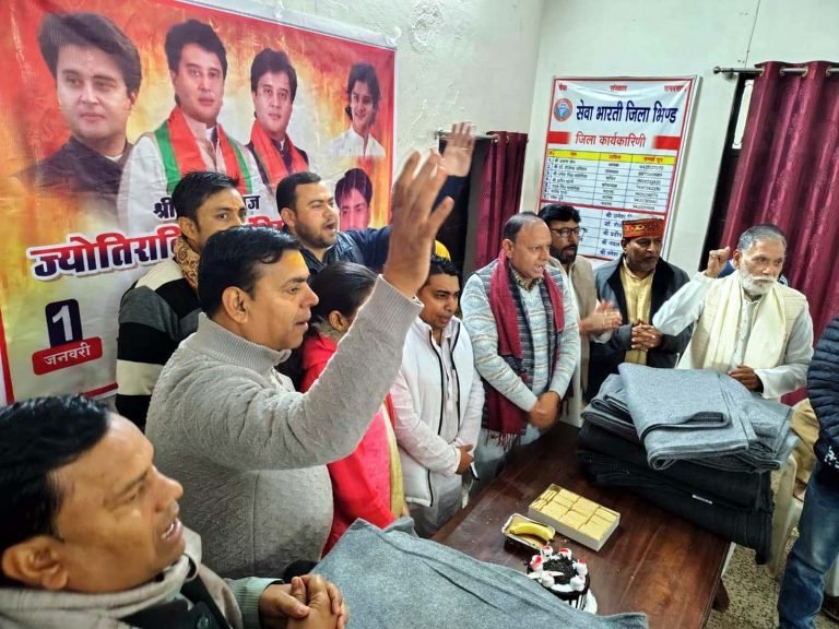 भिण्ड, 01 जनवरी। भारतीय जनता पार्टी जिला कार्यसमिति के सदस्य सिद्धार्थ जैन और उनके साथियों ने नववर्ष 2026 एवं केन्द्रीय मंत्री ज्योतिरादित्य सिंधिया का जन्मदिन आनंद धाम (निराश्रित भवन) पर कंबल एवं मिष्ठान वितरण कर सेवा दिवस के रूप में मनाया।