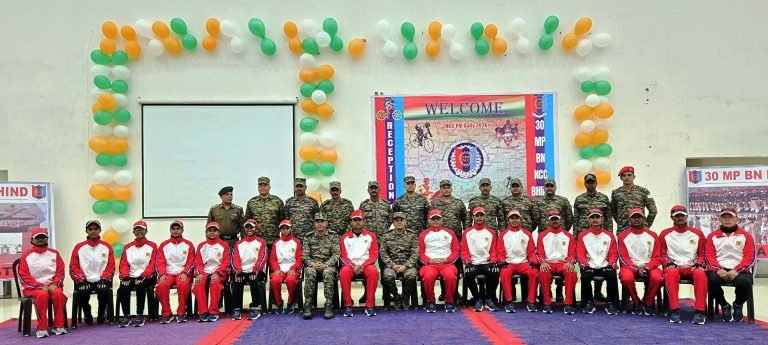 भिण्ड, 10 जनवरी। एनसीसी निदेशालय महाराष्ट्र द्वारा पुणे से दिल्ली तक एनसीसी पीएम रैली-2026 के लिए ‘शौर्य के कदम, क्रांति की ओर’ नामक साइक्लोथोन अभियान का आयोजन किया जा रहा है। इस साइकिल अभियान का नेतृत्व ब्रिगेडियर सचिन गवली, ग्रुप कमांडर, एनसीसी ग्रुप मुख्यालय अमरावती कर रहे हैं। 20 सदस्यीय इस साइकिल अभियान दल में 6 सीनियर डिवीजन एवं 6 सीनियर विंग के कैडेट्स सम्मिलित हैं। अभियान दल के भिण्ड पहुंचने पर 30 एमपी बटालियन एनसीसी भिण्ड के कमाण्डिंग अधिकारी कर्नल कुलवंत सिंह कुहाड़, एनसीसी अधिकारियों, पीआई स्टाफ एवं कैडेट्स ने भव्य स्वागत किया।