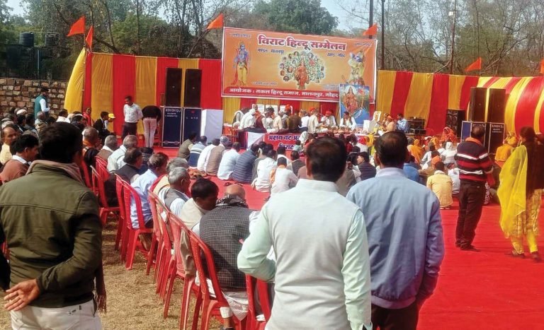 भिण्ड, 11 जनवरी। शा. हाईस्कूल मालनपुर में रविवार को भव्य हिंदू सम्मेलन का आयोजन हर्षोल्लाह और अनुशासन पूर्ण वातावरण में संपन्न हुआ। सम्मेलन में भारी संख्या में नागरिकों, मातृशक्ति, युवाओं एवं विभिन्न संगठनों के कार्यकर्ताओं की उपस्थिति में हुआ। हिन्दू सम्मेलन की शुरुआत जय श्रीराम के नारे के साथ कलश यात्रा निकाली गई, जो मालनपुर चौराहे से नगर में होते हुए कार्यस्थल शा. हाईस्कूल तक निकाली गई। जहां मंच पर श्रीराम के भजन कीर्तनों ने सभी का मन मोह लिया।