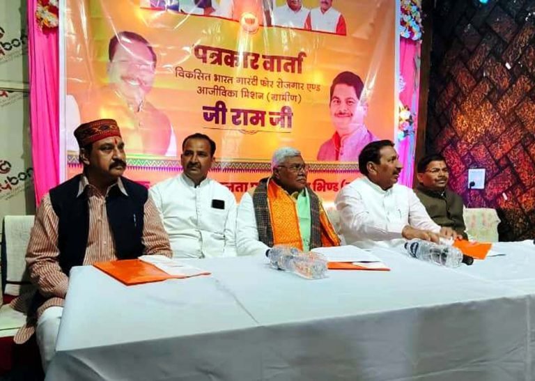 भिण्ड, 12 जनवरी.मनीष दुबे। मप्र सरकर में कृषि मंत्री ऐंदल सिंह कंसाना ने कहा कि प्रधानमंत्री नरेन्द्र मोदी के नेतृत्व में 2025 में किसाना, गरीबों, मजदूरों और विकसित भारत रोजगार आजीविका मिशन की गारंटी ग्रामीण योजना के निमित्त लोकसभा सदन में विल रखा गया, जो कि विकसित और समृद्ध भारत के निर्माण में भारत सरकार का महत्वूपर्ण ऐतिहासिक कदम है। इस योजना के माध्यम से कांग्रेस और विरोध दल जनता के बीच झूठा भ्रम फैलाकर गुमराह कर रही है। जबकि योजना जनहितैषी है। यह बात उन्होंने पत्रकारवार्ता में कही। पत्रकारवार्ता में भाजपा जिला अध्यक्ष देवेन्द्र सिंह नरवरिया, पूर्व सांसद डॉ. रामलखन सिंह, प्रदेश कार्यसमिति सदस्य डॉ. रमेश दुबे मौजूद थे।