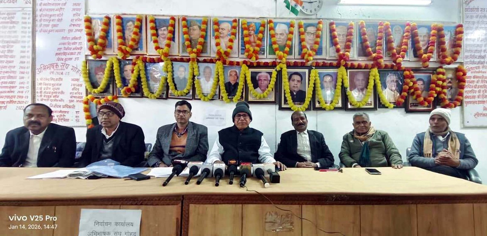 गोहद अभिभाषक संघ चुनाव में निर्वाचन अधिकारी ने अभिभाषक संघ सभगार में आयोजित पत्रकार वार्ता में बताया कि गोहद अभिभाषक संघ चुनाव में अध्यक्ष पद पर रामस्वरूप कुशवाह, विकास कांकर, मुंशी सिंह यादव, उपाध्यक्ष पद पर एक मात्र फार्म शेष रहने पर राजवीर गुर्जर निर्विरोध निर्वाचित हो गए हैं। सचिव पद पर कृष्णकांत शुक्ला, बृजराज सिंह गुर्जर, सहसचिव पद पर प्राची जैन निर्विरोध निर्वाचित हुई हैं। कोषाध्यक्ष पद पर रवि माहौर, तिलक सिंह राजौरिया, पंकज मिश्रा, पुस्तकालय अध्यक्ष पद पर अहिवरन सिंह मौर्य, एसके विमल, रामलखन सिह कंषाना, मधु माहौर प्रत्याशी चुनाव मैदान में हैं। यहां मतदान 16 जनवरी को होगा एवं मतदान पश्चात मतगणना होगी तथा चुनाव परिणामों की घोषणा होगी। पत्रकार वार्ता में निर्वाचन अधिकारी रविशंकर मुदगल, प्रवेश वर्मा, महबूब खान, धर्मेन्द्र श्रीवास्तव, पूर्व अध्यक्ष देवेन्द्र जादौन, राघवेन्द्र तोमर, संजय राठौर, अशोक पचौरी उपस्थित थे।