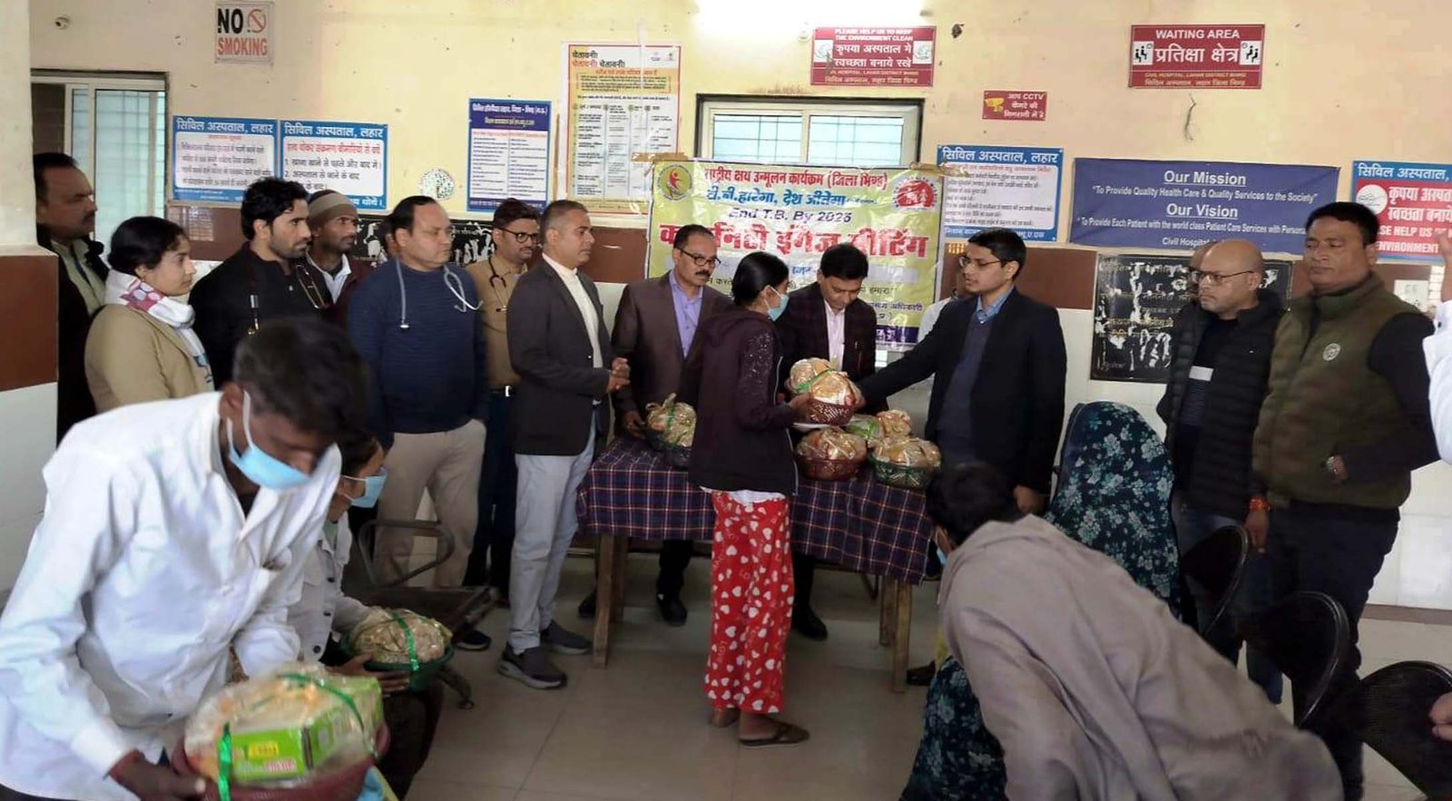 भिण्ड, 14 जनवरी। कलेक्टर किरोड़ीलाल मीणा ने सिविल अस्पताल लहार में पहुंचकर निश्चय पोषण योजना के तहत टीवी मरीजों को फूड बास्केट वितरण की, जिससे टीवी मरीजों को पर्याप्त पोषण मिल सके। प्रधानमंत्री टीवी मुक्त भारत अभियान के तहत टीवी मरीजों को फूड बास्केट दी। कलेक्टर ने 10 फूड बास्केट का वितरण किया तथा वरिष्ठ समाजसेवी या संस्था द्वारा निश्चय मित्र बनकर टीवी मरीजों की सेवा का भाव निश्चय मित्र बनकर फूड बास्केट का वितरण करें, जिससे गरीब और टीवी से बीमार व्यक्ति की मदद हो सके।