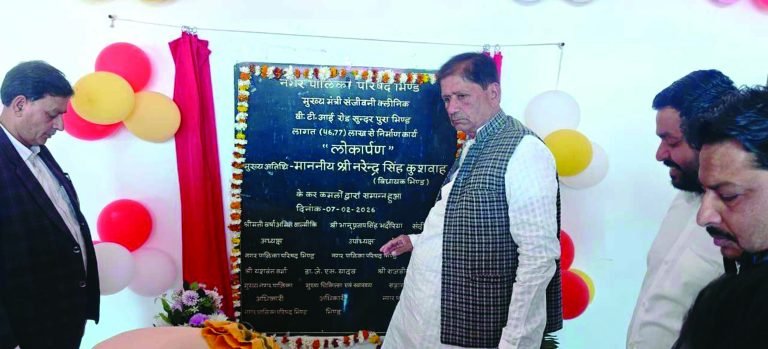 भिण्ड, 08 फरवरी.मनीष दुबे। क्षेत्र के आम नागरिकों को सुलभ, सस्ती और गुणवत्तापूर्ण स्वास्थ्य सेवाएं उपलब्ध कराने की दिशा में एक महत्वपूर्ण कदम उठाते हुए सदर विधायक नरेन्द्र सिंह कुशवाह ने रविवार को दो मुख्यमंत्री संजीवनी क्लिनिक का विधिवत लोकार्पण किया गया। नई तहसील बाईपास रोड पर स्थित संजीवनी क्लीानिक की लागत राशि 23.81 बना, वहीं बीटीआई रोड सुन्दरपुरा पर 46.77 लाख की लागत से दूसरा संजीवनी क्लीनिक बनकर तैयार हुआ। इस अवसर पर मुख्य चिकित्सा एवं स्वास्थ्य अधिकारी डॉ. जेएस यादव, चिकित्सक डॉ. सुनील मौर्य, इंजीनियर अमित शाक्यवार, नर्सिंग स्टाफ, आंगनबाड़ी कार्यकर्ता, आशा कार्यकर्ता सहित बड़ी संख्या में स्थानीय नागरिक उपस्थित रहे।