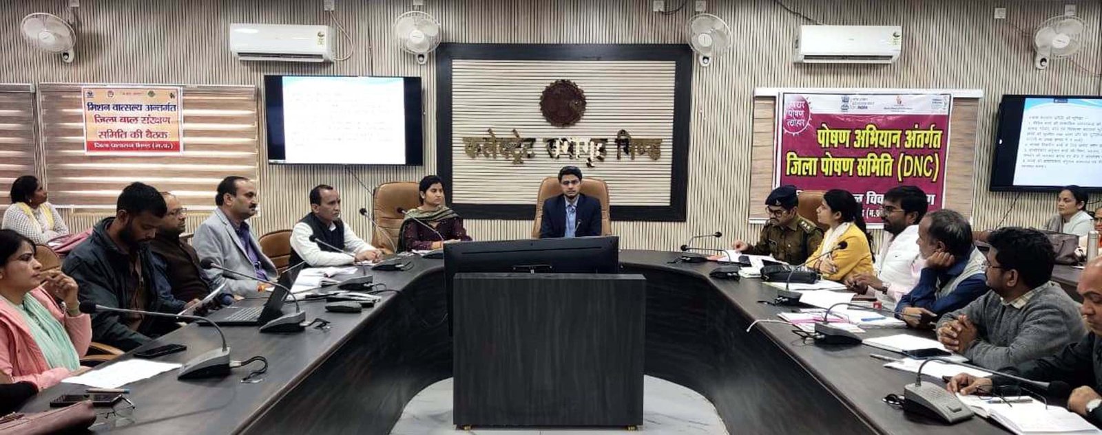 भिण्ड, 12 फरवरी। जिला पोषण समिति की महत्वपूर्ण बैठक कलेक्ट्रेट सभागार में आयोजित हुई, जिसमें कलेक्टर किरोड़ीलाल मीणा ने पोषण अभियान, पोस्को एक्ट तथा विभिन्न विभागीय योजनाओं की प्रगति की गहन समीक्षा की। बैठक में डिप्टी कलेक्टर, महिला बाल विकास अधिकारी, सीएमएचओ, सीडीपीओ सहित सभी सेक्टर सुपरवाइजर उपस्थित रहे।