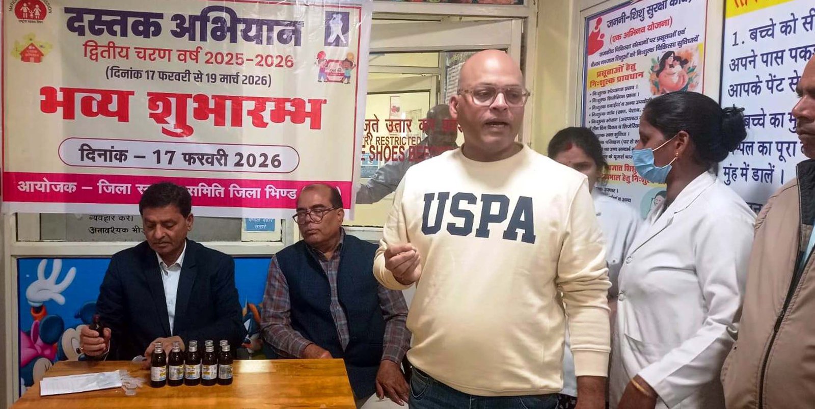 भिण्ड, 17 फरवरी। दस्तक अभियान के द्वितीय चरण का आयोजन 17 फरवरी से 19 मार्च के मध्य किया जाएगा। जिसका जिला स्तर पर शुभारंभ मुख्य चिकित्सा एवं स्वास्थ्य अधिकारी डॉ. जेएस यादव ने किया। इस मौके पर सिविल सर्जन सह अस्पताल अधीक्षक डॉ. आरएन राजौरिया तथा जिला टीकाकरण अधिकारी डॉ. गौरव भटनागर व अन्य अधिकारी व कर्मचारी उपस्थित रहे।