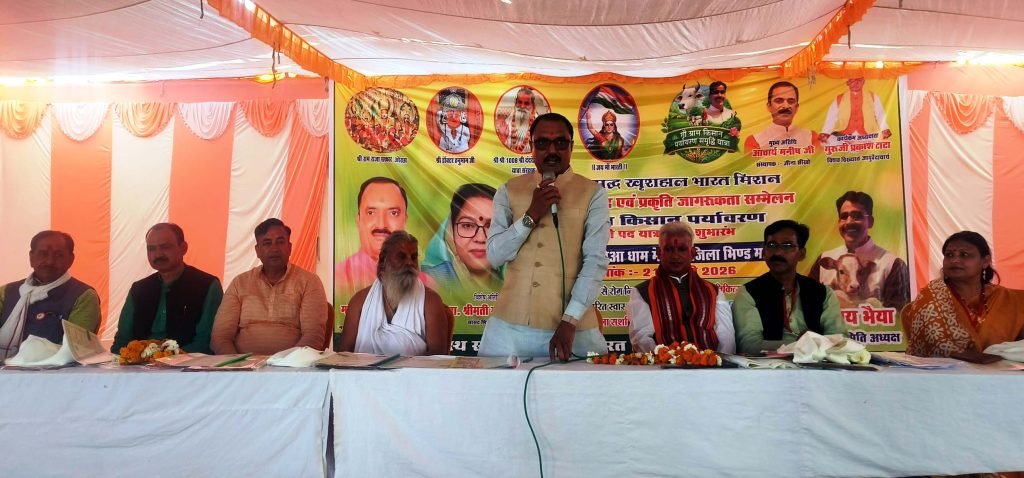 भिण्ड, 21 फरवरी.मनीष दुबे। नवीन एवं नवीनीकरण ऊर्जा मंत्री राकेश शुक्ला ने शनिवार को जिले के प्रसिद्ध धार्मिक स्थल में दंदरौआ धाम में डॉक्टर हनुमान जी महाराज के दर्शन कर 1008 महामंडलेश्वर महंत रामदास महाराज से आशीर्वाद लिया। दंदरौआ धाम से ओरछा तक 21 से 28 फरवरी तक निकाली जाने वाली गौ, ग्राम, किसान, पर्यावरण समृद्धि पदयात्रा कार्यक्रम के शुभारंभ करने से पहले 1008 महामंडलेश्वर रामदास महाराज, नवीन एवं नवीनीकरण ऊर्जा मंत्री राकेश शुक्ला, आयुर्वेदाचार्य डॉ. प्रकाश टाटा, अजय मिश्रा, प्रमोद चौधरी द्वारा पौधारोपण कर गाय माता का पूजन किया गया। इस दौरान उन्होंने भारत माता की प्रतिमा पर पुष्प माला पहनकर दीप प्रज्ज्वलित कर कार्यक्रम का शुभारंभ किया।