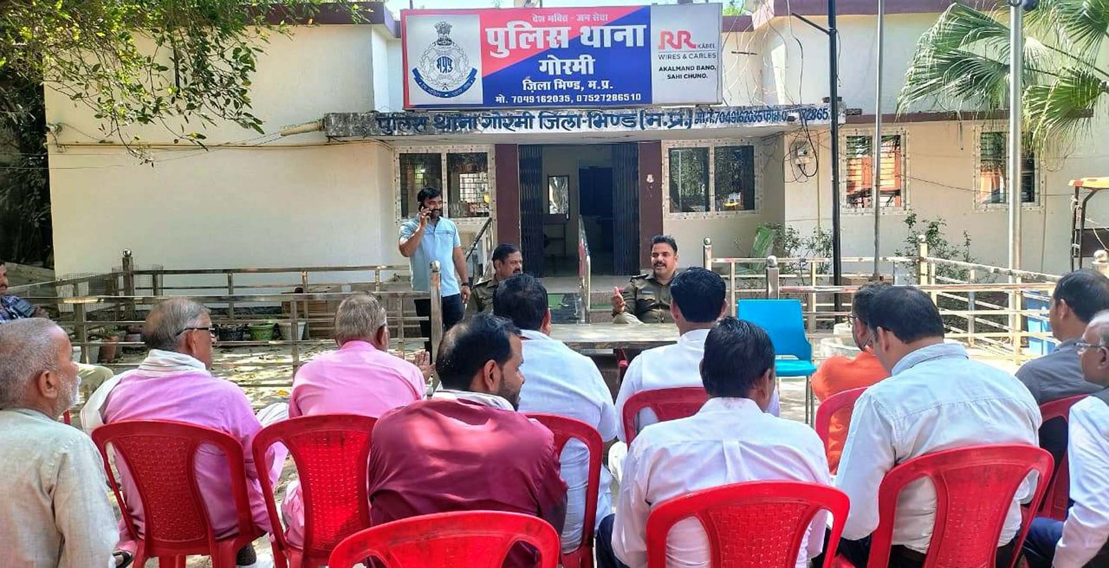 भिण्ड/ गोरमी 27 फरवरी। होली एवं रमजान के महीने को लेकर गोरमी थाने में थाना प्रभारी आशुतोष शर्मा ने नगर के गणमान्य नागरिकों से संवाद किया एवं उनके विचार जाने और होली और रमजान को लेकर आपसी भाईचारा बनाकर शांतिपूर्ण तरीके से त्योहार मनाएं।