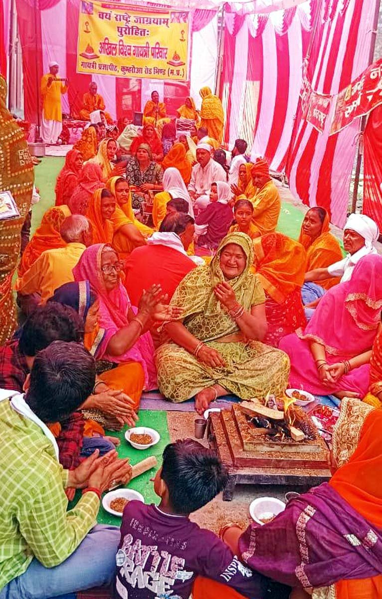 भिण्ड, 08 मार्च.मनीष दुबे। शहर के वीरेन्द्र नगर में मंगला देवी माता मन्दिर के पास पांच कुण्डीय गायत्री महायज्ञ का आयोजन किया जा रहा है। इस कड़ी में दोपहर बाद से सायंकाल तक गायत्री मंत्र के बारे में उद्बोधन एवं दीप यज्ञ का कार्यक्रम संपन्न हुआ। दीपयज्ञ कार्यक्रम में सत्येन्द्र सिंह राजावत जिला समन्वयक भिंड द्वारा उद्वोधन दिया गया। रविवार को सुबह 8 बजे से पांच कुण्डीय गायत्री महायज्ञ संपन्न हुआ। कार्यक्रम में मुख्य ट्रस्टी सुरेन्द्र सिंह चौहान, तहसील समन्वयक उदय सिंह राजावत, देवालय प्रबंधक राम प्रकाश सविता, प्रतिभा सिकरवार, चन्द्रकान्ता भदौरिया, उमा राजावत, माया चौहान, शारदा ओझा, अमर बहादुर सिंह भदौरिया, रामकृष्ण शर्मा, सत्यम सोनी एवं गायत्री परिवार के अनेक कार्यकर्ता उपस्थित रहे।
