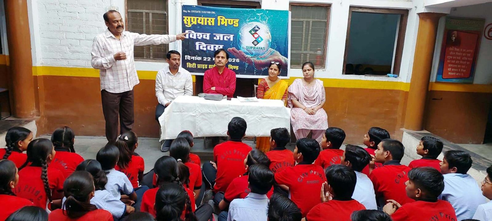 भिण्ड, 22 मार्च। विश्व जल दिवस के अवसर पर सिटी प्राइड हाईस्कूल में सुप्रयास संस्था द्वारा जल जागरूकता कार्यक्रम आयोजित किया गया। जिसका उद्देश्य जल संरक्षण के प्रति विद्यार्थियों एवं समाज को जागरूक करना था।