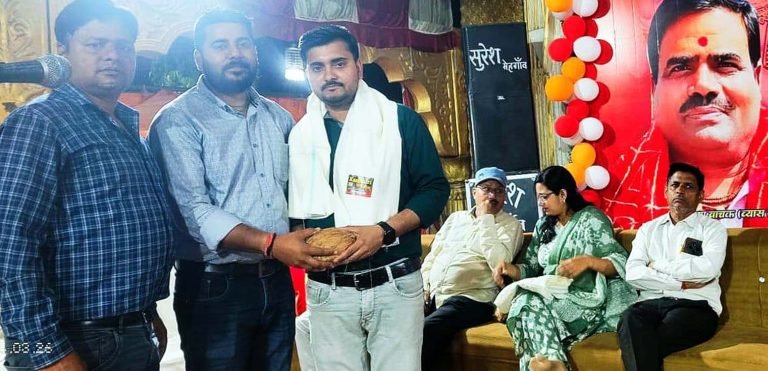 भिण्ड, 26 मार्च। शहर के सिटी पैलेस के सभागार में विगत शाम नवरात्रि महोत्सव के दौरान श्रीमद् भागवत कथा सप्ताह समारोह के अंतर्गत आध्यात्मिक कवि सम्मेलन का आयोजन किया गया।