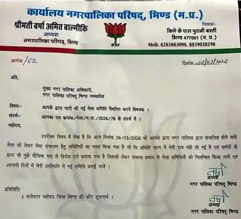 भिण्ड, 27 मार्च। शहर के स्व. हरिकिशन दास जाधव भूत व्यापारिक मेले को लेकर अभी भी स्थिति स्पष्ट नहीं हो पाई है। विधिवत शुभारंभ की तिथि एवं सांस्कृतिक कार्यक्रमों की रूपरेखा भी अभी नहीं बनी है। उधर सीएमओ ने राजनीति के चलते सांस्कृतिक कार्यक्रमों के संचालन हेतु समितियां भी गठित कर दी हैं। इसमें नगर पालिका अध्यक्ष वर्षा बाल्मीकि की सहमति नहीं लिए जाने से वे खपा हैं। उन्होंने सीएमओ को पत्र लिखकर बनाई गई समितियों पर आपत्ति दर्ज कराते हुए उनको स्थगित करने के निर्देश दिए हैं।