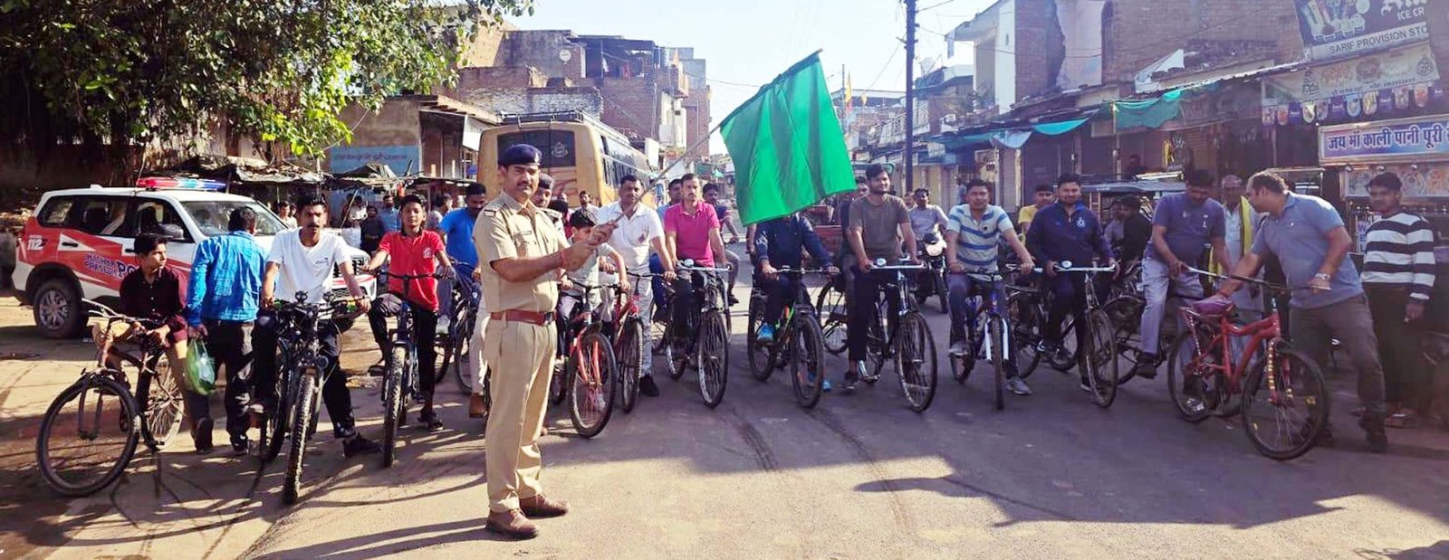भिण्ड, 28 मार्च। लौह पुरुष सरदार वल्लभ भाई पटेल की 150वीं जयंती के उपलक्ष्य में शनिवार को दबोह नगर में उत्साह और जोश का माहौल रहा। पुलिस मुख्यालय भोपाल के निर्देशानुसार, भिण्ड जिला पुलिस बल द्वारा आयोजित विशेष कार्यक्रमों की श्रृंखला में दबोह थाना प्रभारी राजेश शर्मा ने हरी झण्डी दिखाकर साइकिल रैली को रवाना किया। यह साइकिल रैली स्थानीय बस स्टैण्ड से प्रारंभ हुई। रैली में पुलिस के जवानों के साथ एनसीसी कैडेट्स, विभिन्न सामाजिक संगठनों के सदस्य और स्थानीय युवाओं ने बड़ी संख्या में भाग लिया। रैली नगर के प्रमुख मार्गों से होते हुए करीब 3 किमी दूर स्थित गोरा तिराहा तक पहुंची। इस दौरान प्रतिभागियों ने स्वास्थ्य और राष्ट्रीय एकता के प्रति जागरूकता का संदेश दिया।