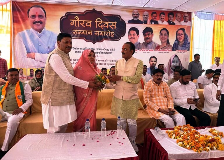 भिण्ड, 01 अप्रैल। नवीन एवं नवकरणीय ऊर्जा मंत्री राकेश शुक्ला के मुख्य आतिथ्य में रामलीला मैदान में आयोजित गौरव दिवस सम्मान समारोह ने न केवल वृद्धजनों का सम्मान किया, बल्कि क्षेत्रीय विकास का नया संकल्प भी लिया। समारोह का शुभारंभ श्रीराम चरितमानस एवं हनुमानजी की आरती कर किया गया।