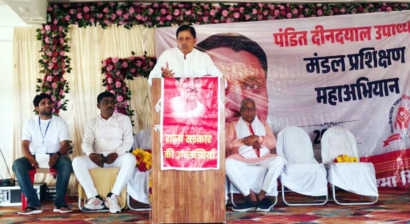 उन्होंने कहा कि प्रदेश के मुख्यमंत्री डॉ. मोहन यादव ने किसानों के सिंचाई के लिए अटलजी की सरकार में प्रारंभ की गई नदी जोड़ योजना को प्रारंभ किया। आज मप्र भाजपा की सरकार हर क्षेत्र में विकास के लिए संवेदनाशील है। उन्होंने कहा कि हमारी विचारधारा में राजनीति करना और सत्ता प्राप्त करना नहीं, हर व्यक्ति की सेवा का माध्यम करने का लक्ष्य है। पं. दीनदयाल उपाध्याय अंत्योदय योजना को बनाकर घर-घर पहुंचने का कार्य कर रही है। संगठन की विचारधारा, सेवा, समर्पण और राष्ट्र निर्माण में कार्यकर्ताओं की भूमिका पर विस्तार से चर्चा हुई। पं. दीनदयाल उपाध्याय के एकात्म मानववाद के सिद्धांतों को जन-जन तक पहुंचाने तथा संगठन को और अधिक सशक्त बनाने के लिए सभी कार्यकर्ताओं को प्रेरित किया। उन्होंने कहा कि ऐसे प्रशिक्षण कार्यक्रम कार्यकर्ताओं को वैचारिक रूप से सशक्त बनाते हुए समाज सेवा एवं राष्ट्रहित के कार्यों के लिए नई ऊर्जा प्रदान करते हैं। उन्होंने कहा कि प्रशिक्षण ही भाजपा के कार्यकर्ताओं के लिए संगठनत्मक ताकत को प्रदान करने हेतु उनको प्रशिक्षित करना ही उद्देश्य है, ताकि कार्यकर्ताओं में सामाजिक समरसता का भाव एक दूसरे के प्रति बना रहे और संगठन मजबूती के साथ आगे बढ़े। भाजपा कार्यकर्ताओं के समर्पण से ही संगठन को ऊर्जा मिलती है।