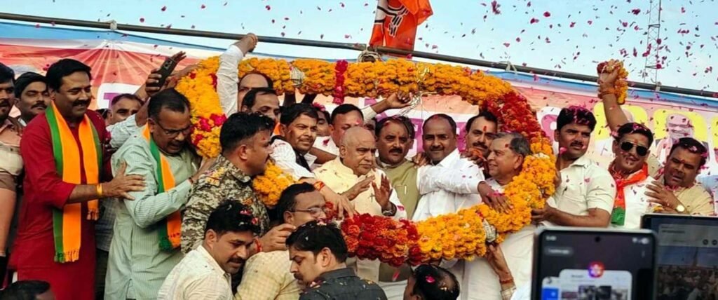 -जगह-जगह पुष्प मालाएं पहनाई गईं, पुष्प वर्षा की गई