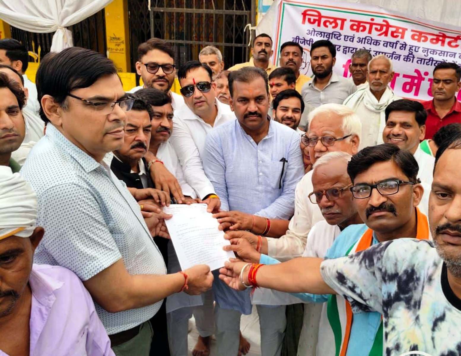 इस अवसर पर जिला कांग्रेस अध्यक्ष धर्मेन्द्र सिंह भदौरिया पिंकी ने कहा पिछले दिनों हुई भीषण ओलावृष्टि और असमय बारिश ने खेतों में तैयार खड़ी गेहूं, सरसों अन्य फसल को पूरी तरह नष्ट कर दिया है, फसलें खेतों में बिछ गई हैं, जिससे दाना काला पड़ने और सड़ने की आशंका बढ़ गई है। किसान की सालभर की पूंजी और मेहनत मिट्टी में मिल चुकी है, हैरानी का विषय है कि एक तरफ किसान की फसल कटकर तैयार है या बर्वाद हो रही है, वहीं दूसरी ओर सरकार गेहूं खरीदी की तारीखें बार-बार आगे बढ़ा रही है। सरकारी केन्द्रों पर खरीदी शुरू न होने के कारण किसान अपनी उपज सुरक्षित रखने के लिए दर-दर भटक रहा है, मण्डी में व्यापारियों द्वारा औने-पौने दामों पर फसल खरीदने की कोशिश की जा रही है, खरीदी केन्द्रों पर अव्यवस्था के कारण किसान अपनी बारी का इंतजार करने को मजबूर है, जबकि मौसम का मिजाज अभी भी खराब बना हुआ है, राजस्व विभाग और कृषि विभाग की संयुक्त टीम द्वारा गांव-गांव जाकर फसल नुकसान का तत्काल सर्वे कराया जाए और मुआवजा राशि घोषित की जाए, गेहूं खरीदी की प्रक्रिया को बिना किसी देरी के तत्काल प्रभाव से शुरू किया जाए। बार-बार तारीखें बदलने का सिलसिला बंद कर एक निश्चित समय सीमा के भीतर शत-प्रतिशत खरीदी सुनिश्चित की जाए, ओलावृष्टि और बारिश के कारण गेहूं में नमी बढ़ गई है, अत: खरीदी के समय नमी के मानकों में ढील दी जाए ताकि किसान की उपज रिजेक्ट न हो, प्रभावित किसानों के केसीसी और अन्य कृषि ऋणों की वसूली तत्काल रोकी जाए, किसानों को 50 हजार रुपए हेक्टेयर के हिसाब से मुआवजा दिया जाए।