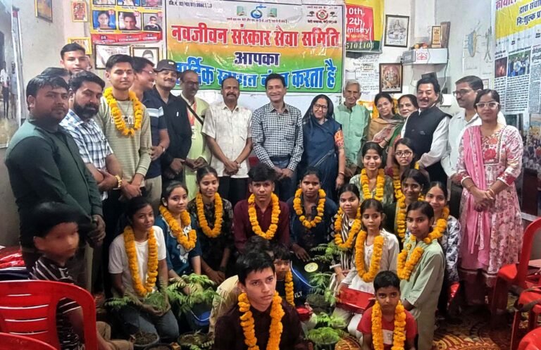 भिण्ड, 19 अप्रैल। नवजीवन संस्कार सेवा समिति द्वारा सतत आयोजित वार्षिक कार्यक्रम में 10वीं 12वीं में उच्च अंक प्राप्त करने वाले मेधावी विद्याथियों को सकोरे, पौध और कपड़े के थैले भेंट कर सम्मानित किया गया। इस अवसर पर मुख्य अतिथि के रूप में शहीद अनूप शर्मा (शौर्य चक्र वीर 4 आतंकी मारे) शहीद आलोक शर्मा के पिताजी रामशंकर शर्मा, माताजी राजेन्द्री शर्मा उपस्थित रहीं। कार्यक्रम का शुभारंभ भारत माता के चित्र पर माल्यार्पण एवं पूजन के साथ हुआ।