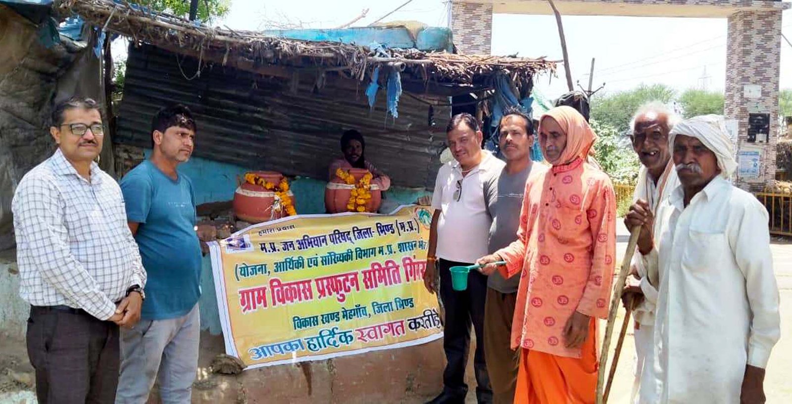 भिण्ड, 22 अप्रैल। जल गंगा संवर्धन अभियान के अंतर्गत मप्र जन अभियान परिषद विकास खण्ड मेहगांव द्वारा चयनित ग्राम विकास प्रस्फुटन समिति गिंगरखी द्वारा ग्राम गिगरखी मुख्य मार्ग पर जल मन्दिर (प्याऊ) का शुभारंभ किया गया। जल शक्ति से नव भक्ति पहल के अंतर्गत ब्लॉक समन्वय जयप्रकाश शर्मा ने विधिवत पूजन-अर्चन के साथ जल सेवा की शुरुआत की एवं पक्षियों के लिए पानी के सकोरे टांगे।