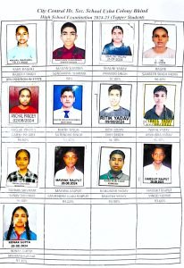 विद्यालय द्वारा दी गई जानकारी के अनुसार कक्षा 10वीं की छात्रा काजल बघेल ने 98.40 प्रतिशत अंक प्राप्त कर राज्य स्तरीय प्रवीणता सूची में नौंवा स्थान एवं जिले में प्रथम स्थान प्राप्त किया है इसके साथ-साथ मदन शर्मा ने 98 प्रतिशत, शालिनी यादव 97.80 प्रतिशत, रागिनी 96.60 प्रतिशत, आंचल पाण्डेय 96.60, नैतिक सिंह 96.40 प्रतिशत, रितिक यादव 96.40, निखिल यादव 95.40, सिमरन शिवहरे 95.40 प्रतिशत अंक प्राप्त करने विद्यालय परिवार का नाम रोशन किया है जोकि सिटी सेन्ट्रल स्कूल की गुणवत्ता और शिक्षण परंपरा को दर्शाता है। इस प्रकार के परीक्षा परिणामों का प्रदर्शन यह दर्शाता है कि यह संस्थान केवल शिक्षा ही नहीं, उत्कृष्टता की परंपरा गढ़ रहा है।